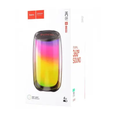 Hoco HC18 Jumper унікальна райдужна колонка, що принесе у ваше життя різноманіття барв і звуку. Вона має овальну будову, що доволі добре тримається у руках і дозволяє відтворювати музику у всі сторони. Також в колонку вбудована RGB-підсвітка, що не тільки робить її яскравою, а й додає чудову атмосферу під час прослуховування.