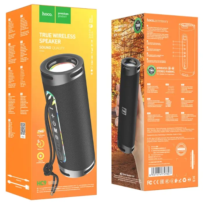 Портативна Bluetooth колонка HOCO HC1 відтворює музику з різних джерел: карти пам'яті, FM-радіо, бездротовий зв'язок Bluetooth.Заряджається за допомогою кабелю USB протягом двох годин. Час безперервної роботи складає 4 години.До Bluetooth колонки можна підключати навушники за допомогою кабелю AUX.Музичний стовпчик має вбудований мікрофон.Для зручності транспортування є міцний шнур...