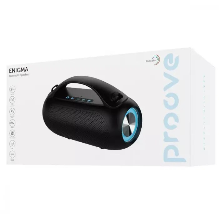Proove Enigma втілює гармонію функціональності та естетики. Її овальна форма ідеально вписується в сучасний інтер\'єр. Плавні лінії колонки створюють цілісний та злагоджений вигляд. Вбудована ручка забезпечує зручність у транспортуванні, дозволяючи легко брати колонку з собою на відпочинок або в подорож.
