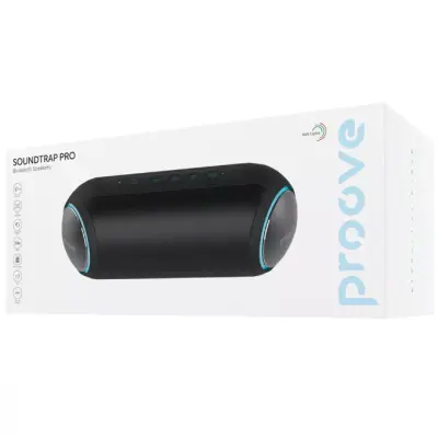 Proove SoundTrap Pro відзначається стильним овальним дизайном, де чорний колір відмінно поєднується з металевими і силіконовими елементами. Компактні розміри роблять колонку ідеальним вибором для використання в будь-яких умовах - вдома, на роботі чи в подорожі.