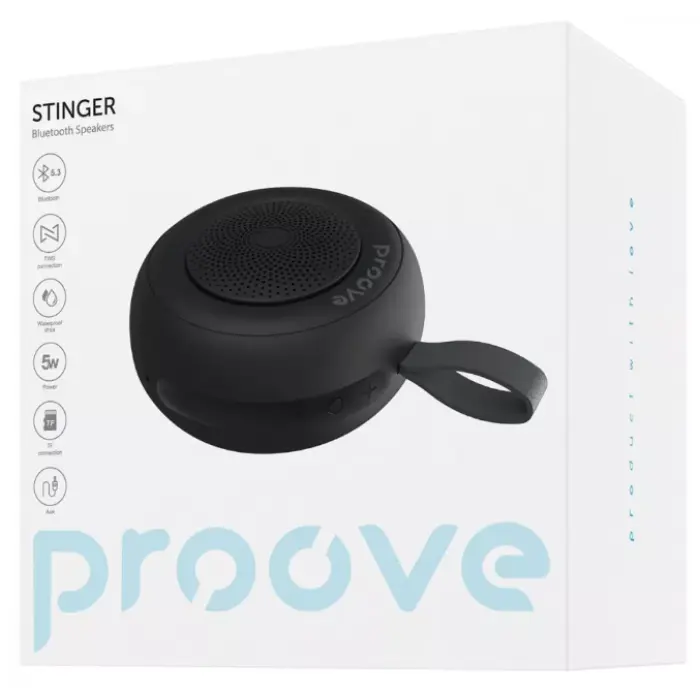 Proove Stinger має компактний дизайн, що робить її відмінним спутником для вашого руху. Із невеликим розміром, легко поміщається в кишеню. Крім того, на колонці є тканинна петля, що дозволяє зручно підвісити її на рюкзак, гачок чи інше місце.