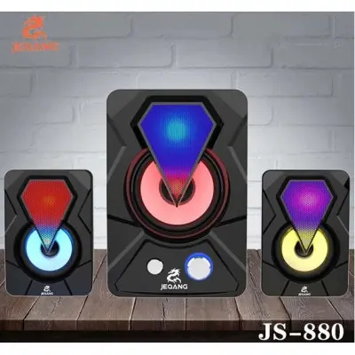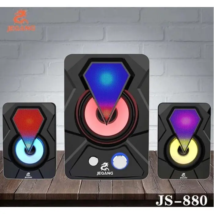 Компьютерные колонки с RGB подсветкой Jeqang JS-880 Черные - это мощная аудиосистема 2.1, способная впечатлить самых требовательных меломанов и превратить прослушивание музыки в захватывающее световое шоу.