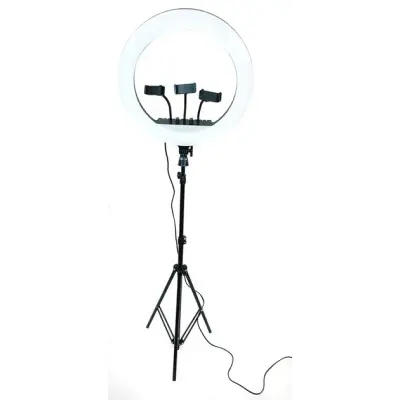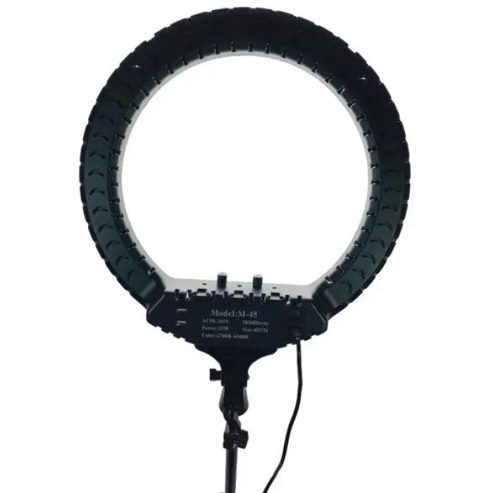 Кільцева форма лампи є ключовою особливістю, яка забезпечує рівномірний розподіл світла навколо об’єкта. Діаметр 46 сантиметрів дозволяє охоплювати широку зону освітлення, що особливо важливо для портретної зйомки, макіяжу та відеозапису. Центральний отвір кільця призначений для встановлення камери або смартфона точно по осі світлового потоку, що усуває асиметрію освітлення та забезпечує правильне підсвічування обличчя або предмета.