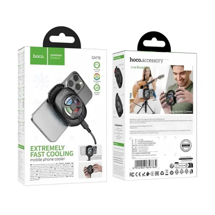 Hoco GM26 – компактний кулер для мобільного телефону, розроблений для моментального охолодження вашого пристрою. Завдяки тришвидкісному регулюванню та цифровому моніторингу температури кулер забезпечує стабільну роботу смартфона навіть за інтенсивного використання.