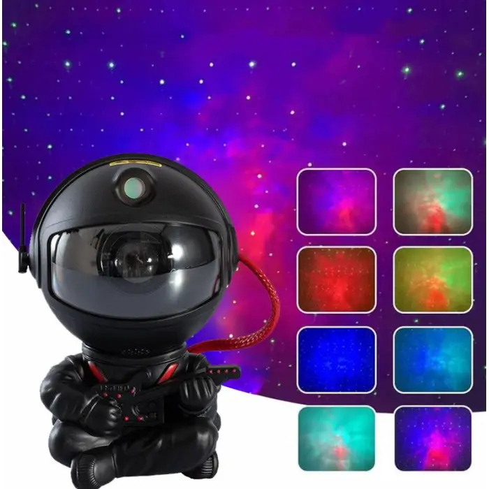 Лазерный проектор галактики в виде космонавта, держащего в руках звезду, станет отличным ночником и любимой игрушкой для детей. Восемь ярких разноцветных изображений космоса позволят перенести великолепие звездного неба на стену, потолок комнаты или машины. Вы можете отрегулировать угол проекции, так как проектор находится в подвижном шлеме астронавта. Голова космонавта вращается на 360 °, с магнитным притяжением, так что звездное небо может быть проецировано в любом месте без ограничений.