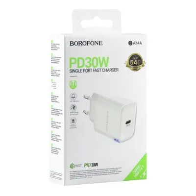 Мережевий зарядний пристрій Borofone BA84A USB-C 30W Білий