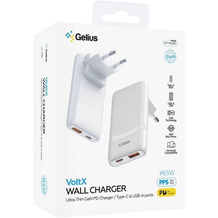 Gelius VoltX GP-HC067 GaN 65W — це універсальний і потужний зарядний пристрій нового покоління, який поєднує високі технології, надійність та зручність.