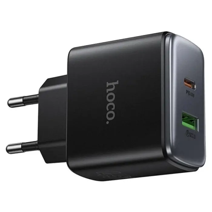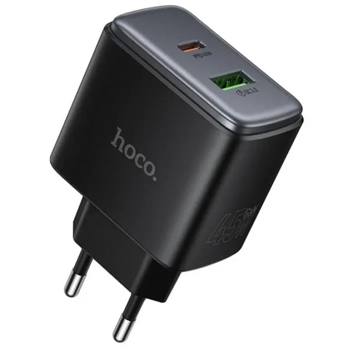 Мережевий зарядний пристрій Hoco C158A PD 45W USB-C+USB-A Black, Чорний