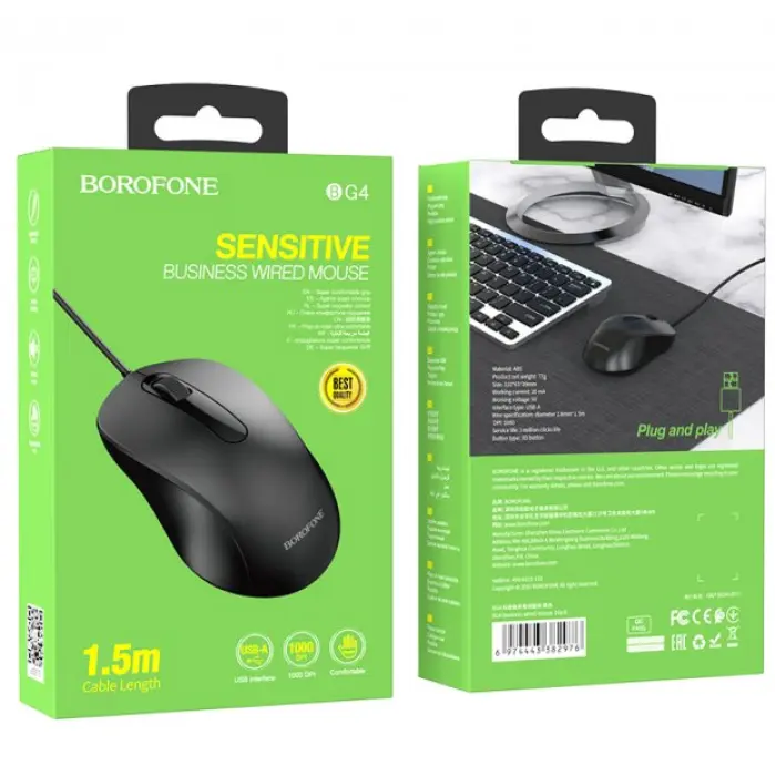 Мышь BOROFONE BG4 Business имеет классический дизайн и универсальную конструкцию корпуса, поэтому по..