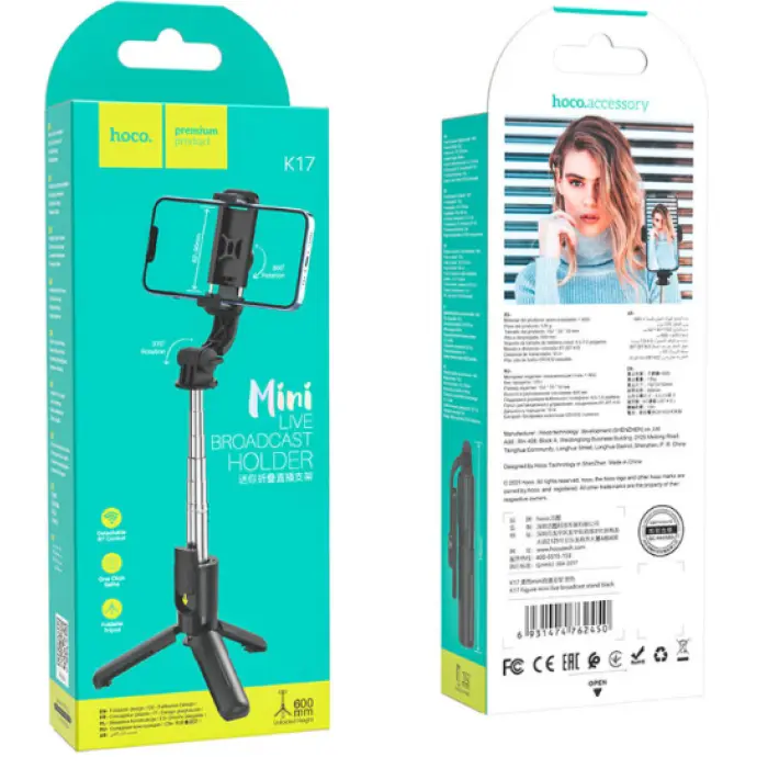 Селфі-штатив Hoco K17 - універсальний аксесуар, який вирізняється сумісністю з більшістю моделей суч..