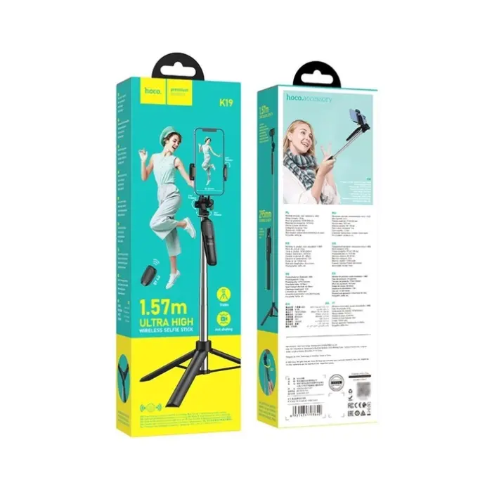 Селфі-трипод Hoco K19 є компактним і універсальним аксесуаром для зйомки високоякісних селфі і відео. Він виготовлений із міцних матеріалів та має стильний дизайн.