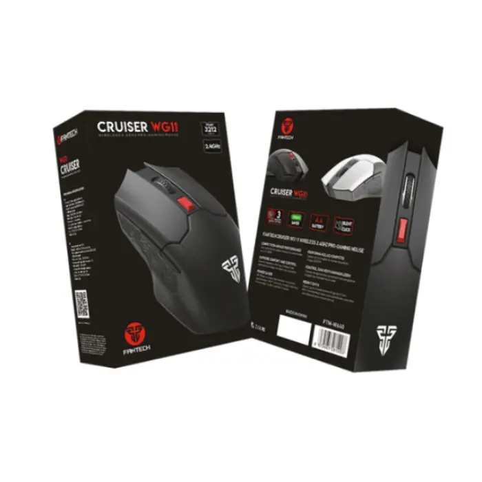 Wireless мышь Fantech WG11 Cruiser – это эргономичный аксессуар для ежедневного использования. Модель подходит для использования как в левой, так и в правой руке. Эргономичная форма USB мыши, практичный дизайн и отсутствие проводов принесут массу приятных эмоций в повседневную эксплуатацию. Корпус устройства изготовлен из прочного пластика, резиновые накладки на боковых панелях предотвратят скольжение пальцев. Аксессуар оснащен 6 кнопками с отличным откликом, которые способны выдержать до 5 миллионов нажатий. Чувствительный оптический сенсор Pixart FCT3065 обеспечивает точное отслеживание всех действий с максимальной скоростью 30 IPS и максимальным ускорением 10 G. Встроенная кнопка для смены режимов DPI "на лету" поможет легко настроить чувствительность от 800 до 2000 DPI. Длительную работу аксессуара от одной батарейки типа АА обеспечивает высокоэффективная система экономии энергии.