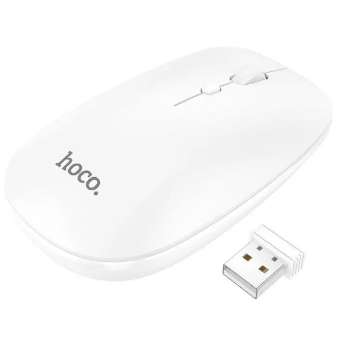 Hoco GM14 White – стильная и современная беспроводная мышь, которая обеспечивает удобство в использовании, стабильное подключение и высокую производительность. Она идеально подходит для работы, обучения и развлечений, совместима с разными устройствами и имеет эргономичный дизайн.Основные характеристики:✔ Тип подключения: Bluetooth + 2.4G USB-ресивер – два варианта беспроводного подключения.✔ Совместимость: Windows, MacOS, Android – работает с ноутбуками, ПК, планшетами и смартфонами.✔ Датчик: Оптический – обеспечивает плавное и точное управление.✔ Разрешение: Регулируемое до 1600 DPI – подходит для работы и навигации.✔ Питание: Аккумулятор – заряжается через USB Type-C.✔ Эргономичный дизайн: Удобная форма для продолжительного использования.✔ Материал корпуса: Гладкое матовое покрытие – не оставляет отпечатков и приятно на ощупь.Достоинства: Два режима подключения – Bluetooth или USB-ресивер для большей гибкости. Тихая работа кнопок – минимальный шум при нажатии. Компактный и легкий дизайн – удобно носить с собой. Долгое время автономной работы – энергоэффективность и быстрая зарядка. Элегантный белый цвет – отлично смотрится в любом интерьере.Hoco GM14 White – это отличное сочетание технологий, эргономики и стиля, что делает ее идеальным выбором для ежедневного использования.Мышь GM14 Platinum, беспроводная мышь, подключение 2.4G, 1200 DPI1. Материал: ABS.2. Размер: 115*63*36мм. Вес: 60г.3. Схема: Han Tianxi. Чип: MX8650.4. Метод подключения: беспроводное соединение 2.4G.5. DPI: 1200.6. Срок службы: около 3 миллионов раз. 200000 прокручиваний.7. Тип клавиш: 3D клавиши.8. Совместимость с большинством настольных компьютеров и ноутбуков...