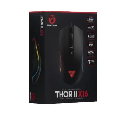 Геймерская мышка Fantech X16 Thor II станет не только грозным оружием победы, но и прекрасным декоративным предметом на игровом столе. Дизайн, черный цвет и неоновая подсветка создадут подходящую атмосферу и прибавят удовольствия от игрового процесса. Крепкая конструкция корпуса убережет манипулятор от повреждения даже во время самых жарких виртуальных дезматчей