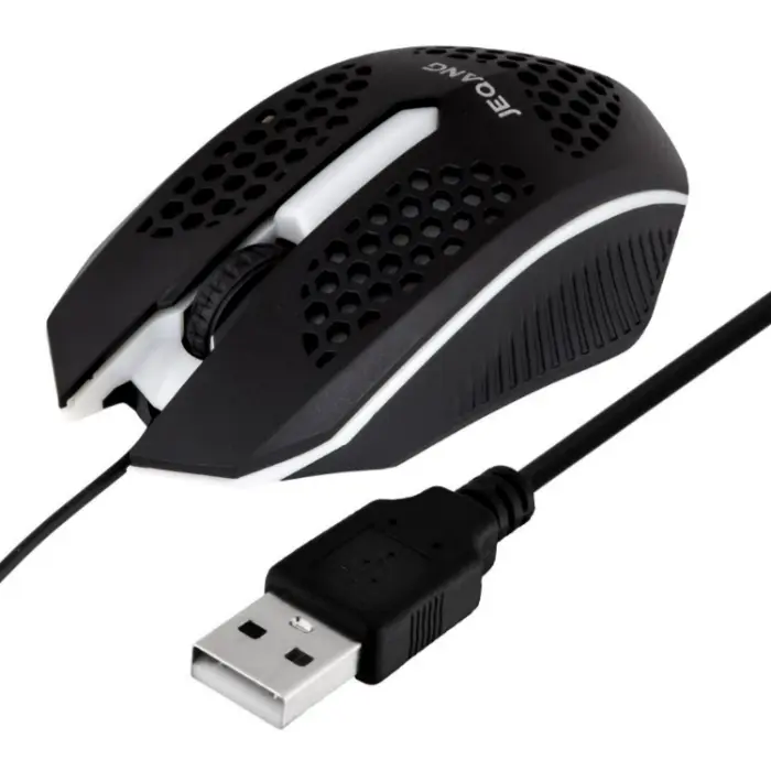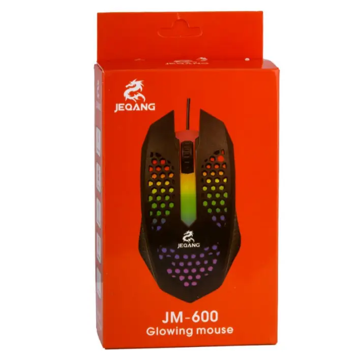 USB Мышь JEQANG JM-600 – надежная и удобная мышка, которая идеально подойдет как для игр, так и для выполнения повседневных задач на компьютере. Модель реализована в необычном дизайне, оригинальность которого запечатлена в выполненной в виде пчелиных сот, перфорированной верхней панели и приятной для глаз LED подсветке, что создает атмосферный визуальный эффект. Подсвечивающиеся линии на боковых панелях повторяют изгибы корпуса и плавно переходят на торец, дополняя привлекательный внешний вид мышки. Благодаря симметричной форме, изготовленной из прочного пластика, корпуса и небольшому весу, устройство обеспечит максимальный комфорт даже при многочасовом использовании. Аксессуар оснащен отличным оптическим сенсором чувствительностью 1600DPI и тремя кнопками, включая колесо. Встроенный кабель длиной 1.2м выполнен в надежной оплетке, имеет USB коннектор, что делает мышку совместимой с настольными компьютерами, большинством моделей ноутбуков и некоторыми другими устройствами.