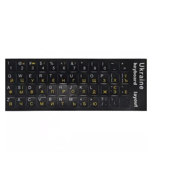 Наклейка для клавіатури ПК Eng/Rus Black-yellow, Чорно-жовта