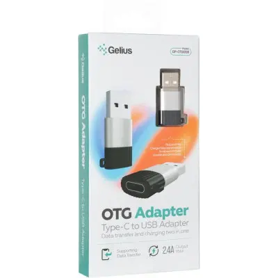 Gelius GP-OTG008 - переходник, предназначенный для подключения к устройствам с разъемом Type-C кабелей или других устройств с коннектором USB. Используется для синхронизации и зарядки, поддерживает силу выходного тока 2,4А.