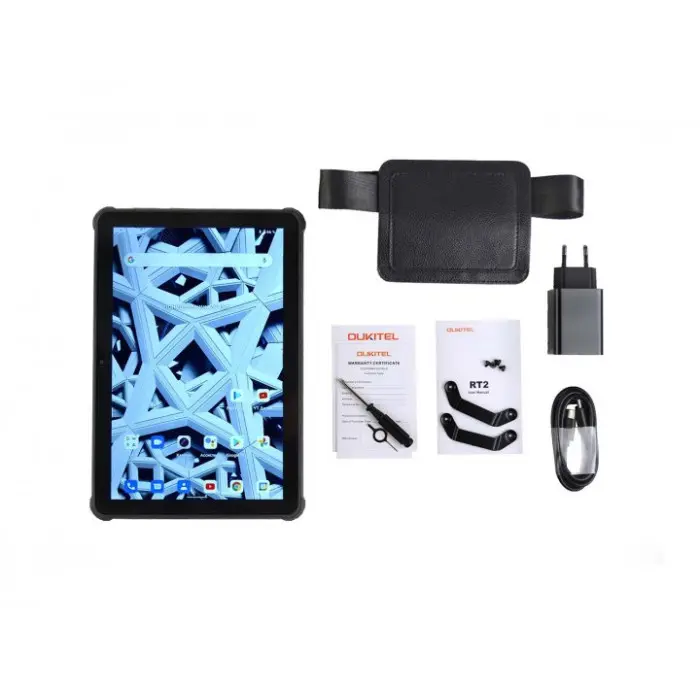 Однією з головних особливостей Oukitel RT2 став акумулятор ємністю 20 000 мАг, який підтримує швидке заряджання потужністю 33 Вт. За словами розробника, одного заряду вистачає на 900 годин роботи в режимі очікування, 15 годин перегляду відео або 15 годин відеоігор. У поєднанні із захистом військового рівня настільки потужна батарея дозволяє брати планшет куди завгодно, не боячись за його збереження. Для зв'язку передбачено слот під SIM-карту, модем з підтримкою LTE та модуль Wi-Fi. Oukitel RT2 отримав посилений корпус, виконаний за стандартами MIL-STD-810H, IP68 та IP69K. Це означає, що він продовжить справно працювати після падінь з висоти до 1,5 метра, ударів, занурення у воду на 1,5 м протягом 30 хв., контакту з пилом і піском, при температурі від -60 до +60 градусів Цельсію. Зарядний порт пристрою закритий гумовою заглушкою, яка також запобігає потраплянню рідин та бруду. За продуктивність відповідає не найпотужніший процесор MediaTek MT8788, оснащений 8-ма ядрами з частотою 2 ГГц, а також 8 ГБ оперативної пам'яті. Об'єм внутрішньої пам'яті становить 128 ГБ, але її можна збільшити за допомогою картки SD. Oukitel RT2 має LCD-екран з діагоналлю 10,1 дюйма і роздільною здатністю 1920х1080 пікселів. Фронтальна камера на 16 Мп розташована таким чином, щоб користувач постійно відображався центром під час сеансів відеозв'язку.