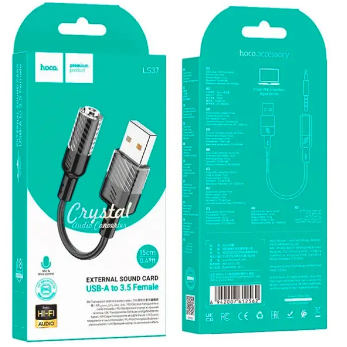 Перехідник аудіокабель Hoco LS37 USB to 3.5 мм - це ідеальне рішення для підключення ваших улюблених аудіопристроїв до смартфонів, планшетів або ноутбуків, які не мають стандартного 3.5 мм аудіороз\'єму. Високоякісний перехідник забезпечує чудову передачу звуку без втрати якості, що дозволяє насолоджуватися вашою музикою, відео або подкастами з максимальним комфортом.