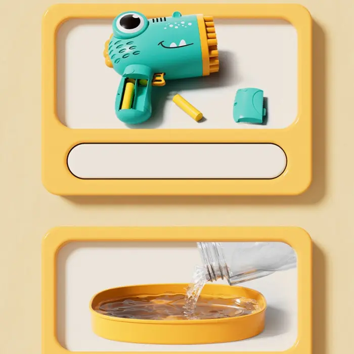 Яркий зеленый пистолет для мыльных пузырей с насадками, имеющими 40 отверстий – это веселый и увлекательный способ развлечься детям на прогулке, во дворе или на детских праздниках.