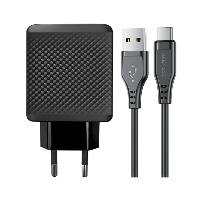 Сетевое зарядное устройство Aсefast A90 18W + Type-C Black, Чёрный