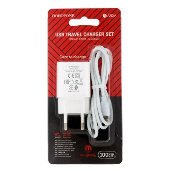 Сетевое зарядное устройство Borofone 1USB BA52A 2.1A+ Lightning Белый