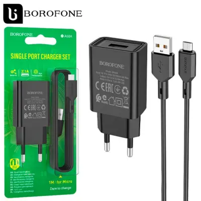 Сетевое зарядное устройство Borofone BA68A Nimble + MicroUsb 2.1A Black, Чёрный