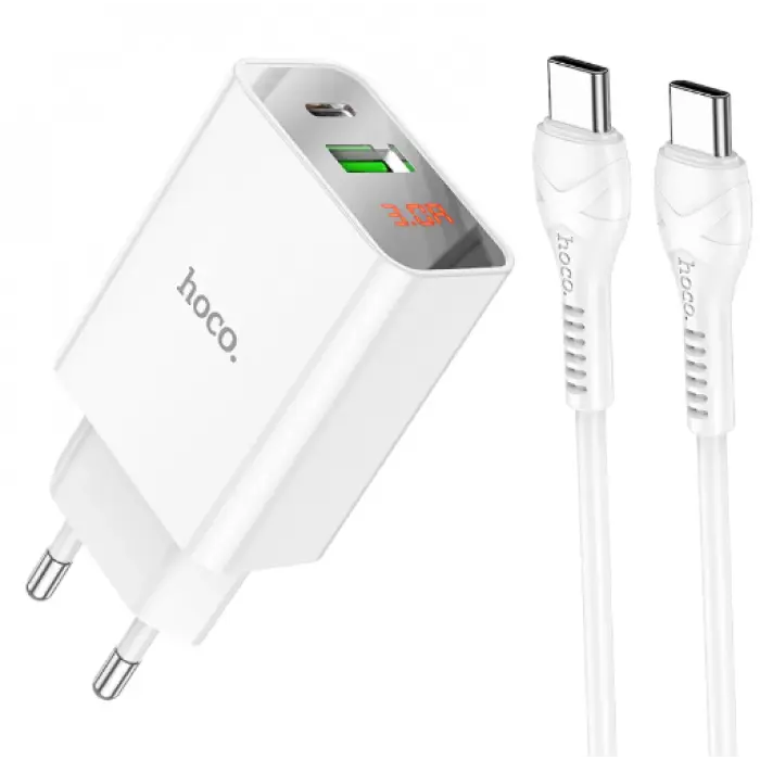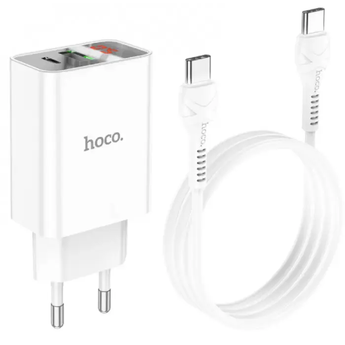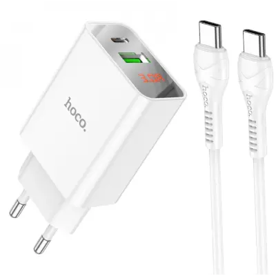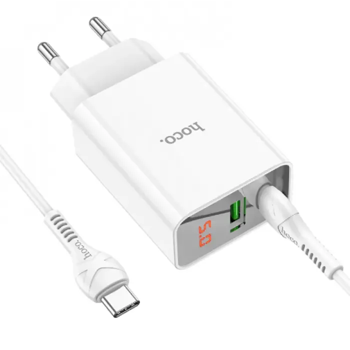Сетевое зарядное устройство HOCO C149A Charm оснащено портом Type-C и USB-A для эффективной зарядки ..