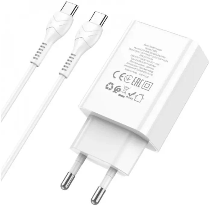 Borofone BA84A — это компактный и мощный зарядный сетевой адаптер с одним портом USB‑C и кабелем Typ..