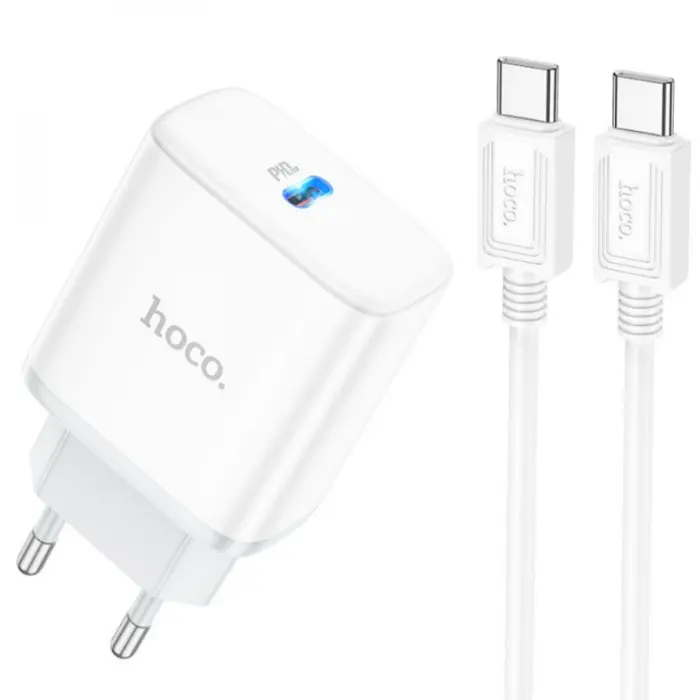 Сетевое зарядное устройство Hoco C104A Stage поможет быстро и с полной безопасностью зарядить большинство моделей современных смартфонов, планшетов и других цифровых гаджетов. Аксессуар выполнен в классическом дизайне, имеет компактные размеры и небольшой вес. Его надежно собранный корпус изготовлен из прочного, огнестойкого поликарбоната, выполнен в практичной форме со скругленными гранями, что в сочетании с глянцевой поверхностью обеспечит приятные тактильные ощущения пользователю. На нижнем торце устройства находится сетевая вилка европейского стандарта для его подключения к сети с напряжением 110-240В и частотой 50-60Гц. На его верхней панели удобно расположен подсвечиваемый разъем Type-C, максимальная мощность на выходе которого может достигать 20Вт. Модель поддерживает быструю зарядку по протоколам PD и QC2.0/3.0, технологию PPS с исходящим напряжением 3.3-11В при силе тока 1.8А, оснащена многоуровневой системой защиты. В комплект к адаптеру входит кабель Type-C - Type-C, длина которого составляет 1м.
