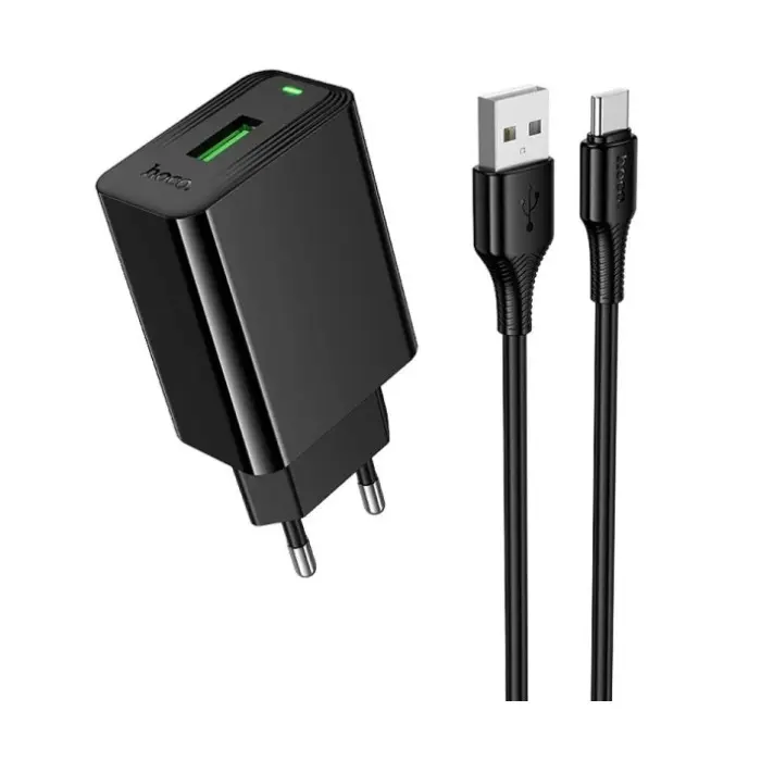 Hoco CS92A Leader — это компактное сетевое зарядное устройство с одним портом USB-A и кабелем USB-A → Type-C в комплекте, предназначенное для быстрой и безопасной зарядки современных гаджетов.
