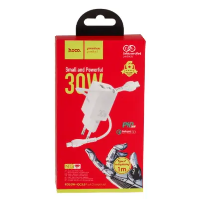 Сетевое зарядное устройство Hoco N13 + Кабель Type-C to Lightning (PD30W) Белый
