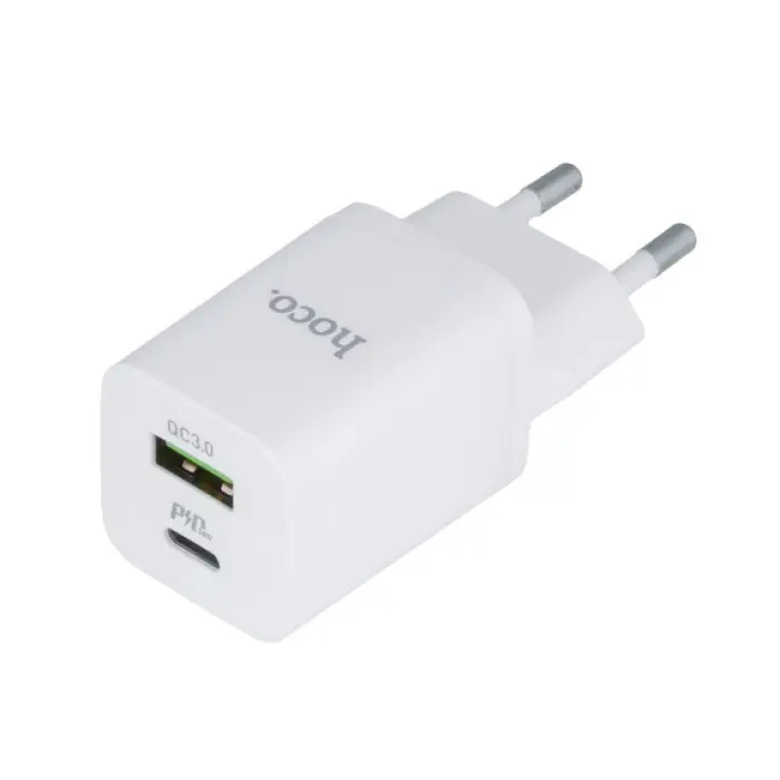 Сетевое зарядное устройство HOCO C149A Charm оснащено портом Type-C и USB-A для эффективной зарядки ..