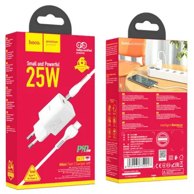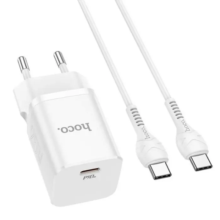 Сетевое зарядное устройство Hoco N19 PD 25W + Кабель Type-C to Type-C White, Белый
