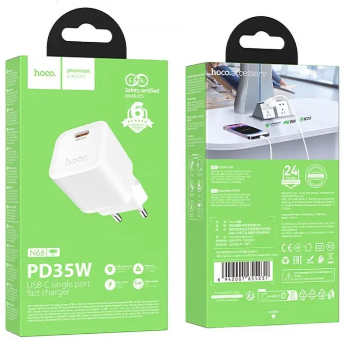 N66 PD 35W – это компактный и мощный сетевой адаптер питания с поддержкой технологии Power Delivery (PD) для быстрой, эффективной и безопасной зарядки современных устройств. Благодаря мощности до 35 Вт, он прекрасно подходит для повседневной зарядки смартфонов, планшетов и других гаджетов с USB-C портом.