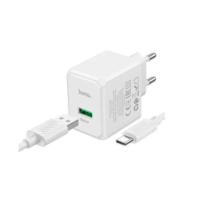 Зарядне мережеве Hoco CS12A USB 18W QC3.0 швидка зарядка + кабель USB to Type-C для телефону/пристроїв для Android/Samsung/Xiaomi/Huawei/Meizu Білий