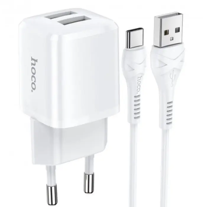 Hoco C149A — универсальный зарядный сетевой адаптер с двумя портами (один USB‑C с поддержкой Power D..