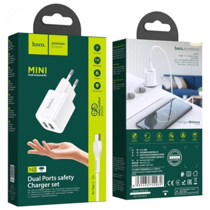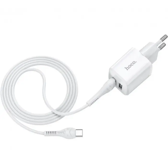 Сетевое зарядное устройство HOCO C149A Charm оснащено портом Type-C и USB-A для эффективной зарядки ..