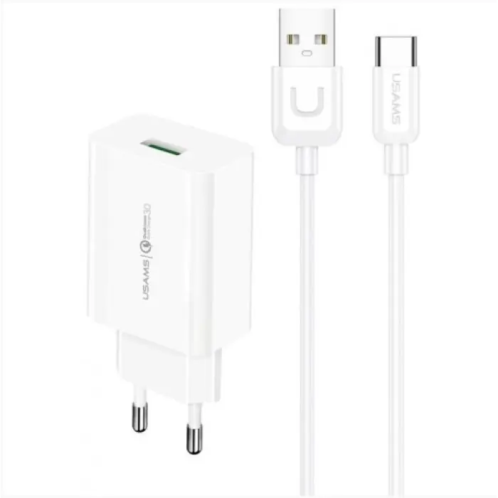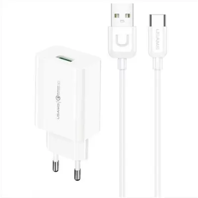 Сетевое зарядное устройство Usams T48 KiT T22 USB-A QC3.0 18W 3A + Type-C White, Белый