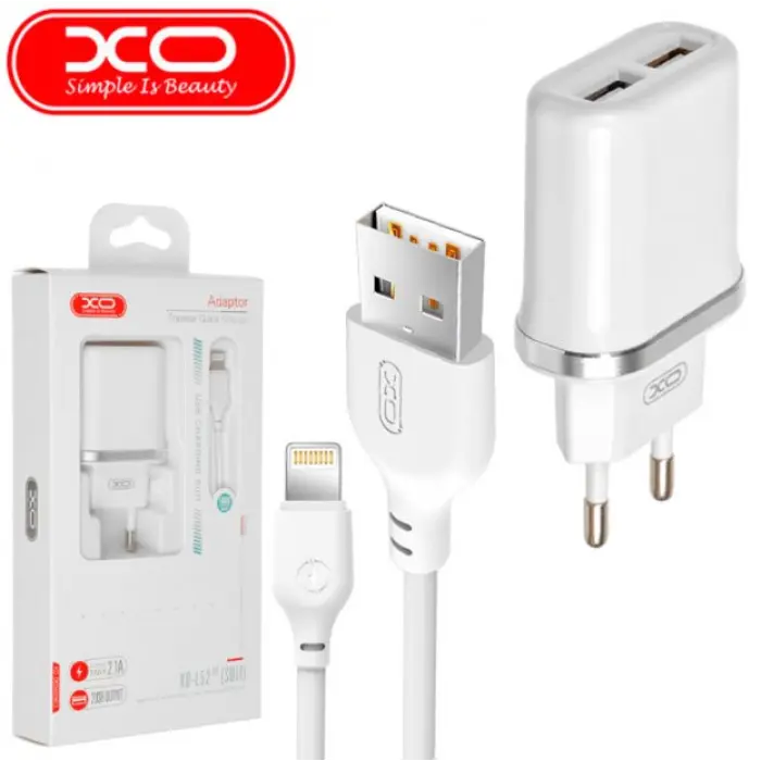 Сетевое зарядное устройство XO L52 Lightning 2USB 2.1A White, Белый