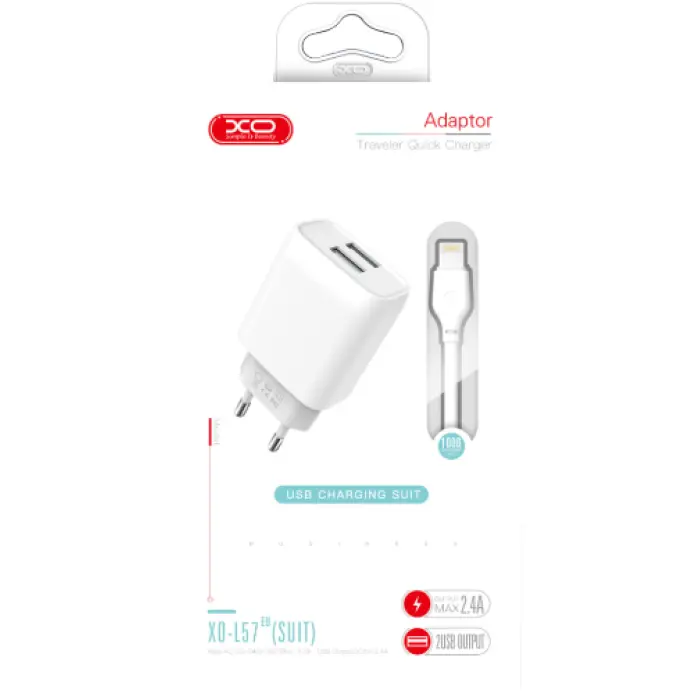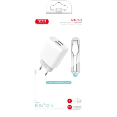 Сетевое зарядное устройство XO L57 Lightning 2USB 2.1A Белый