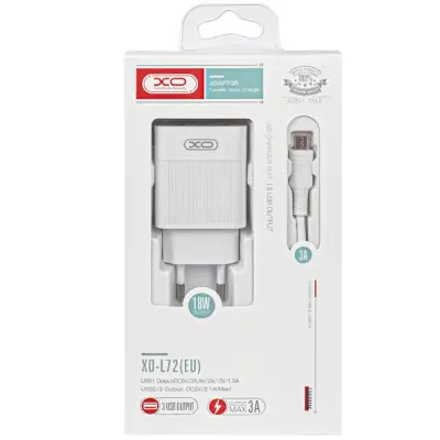 Сетевое зарядное устройство XO L72 MicroUSB 1USB- 18W/ 2USB/2.4a Белый