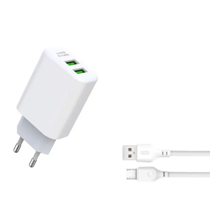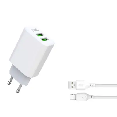 Сетевое зарядное устройство XO L85C MicroUSB 2USB 2.4A (12W) Белый