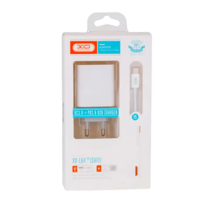 Сетевое зарядное устройство XO L64 Type-C to Type-C QC3.0 18W поможет восполнить заряд смартфона за минимальное время. Компактные размеры, небольшой вес, наличие сразу двух разных разъемов и поддержка нескольких протоколов быстрой зарядки определяют универсальность данного адаптера и комфорт в повседневной эксплуатации. Корпус аксессуара изготовлен из огнеупорного поликарбоната и ABS пластика, имеет приятную на ощупь поверхность и скругленные боковые грани. В торце устройства размещен один разъем Type-C, поддерживающий технологию быстрой зарядки PD3.0, и один стандартный USB разъем, который поможет за минимальное время зарядить смартфоны и планшеты, поддерживающие технологию QC3.0. Максимальная мощность составляет 18Вт, сила тока - 3A. Адаптер комплектуется кабелем Type-C to Type-C.