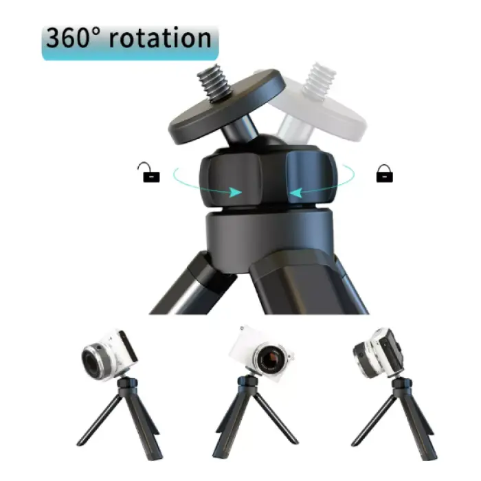 Універсальний і компактний штатив для фотоапаратів, смартфонів та інших пристроїв. Має обертальну головку на 360° для зручної фіксації. Легкий і стабільний, підходить для зйомки в дорозі або для щоденного використання.