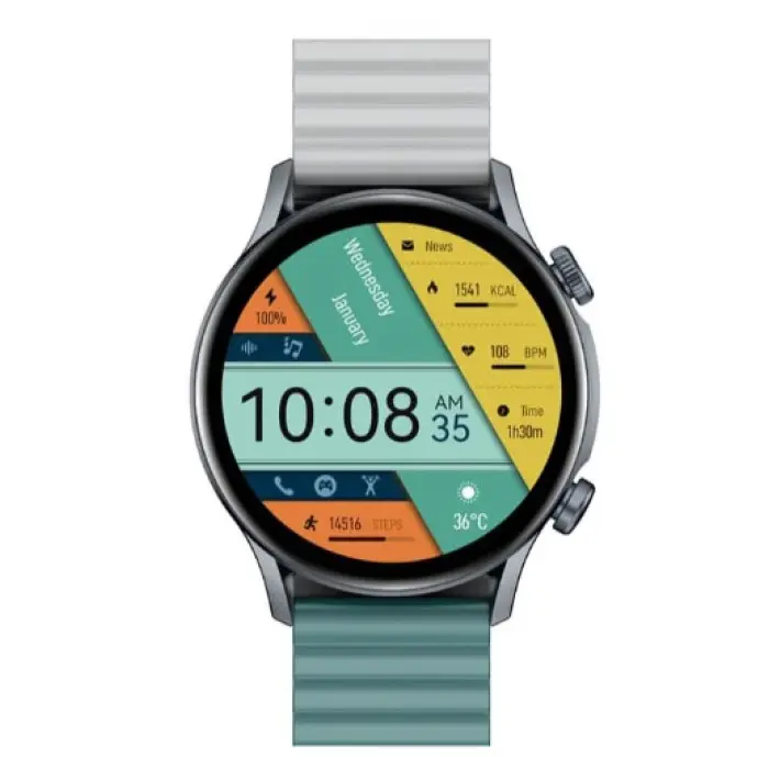 Великий 24 / 7 Моніторинг Здоров'я Kr Pro Ltd надійно охороняє ваше психічне та фізичне здоров'я, відстежуючи все, від частоти серцевих скорочень, оцінки сну, дихання, рівня стресу до змісту усвідомленості в режимі реального часу. Використовуючи неймовірно великі функції здоров'я Kr Pro Ltd протягом усього дня, ви напевно вестимете більш здорове життя. Модернізований Kieslect OS Kr Pro Ltd працює під управлінням Kieslect OS, оновленої програми, розробленої Kieslect самостійно. Завдяки покращеному дизайну інтерфейсу користувача та інтерактивному інтерфейсу ви можете вивчити його комплексні функції, такі як перевірка результатів тренувань і звіти про стан здоров'я, насолоджуючись безперебійною роботою. 1,43-дюймовий HD кольоровий Amoled-дисплей з AOD Kr Pro Ltd оснащений приголомшливим 1,43-дюймовим кольоровим Amoled-дисплеєм HD з роздільною здатністю 466*466 пікселів, який обов'язково зачарує вас своїми яскравими кольорами та кристально чистим зображенням. З функцією AOD на Kr Pro Ltd ви нарешті можете попрощатися з необхідністю постійно повертати зап'ястя або натискати кнопки, щоб перевірити годинник.