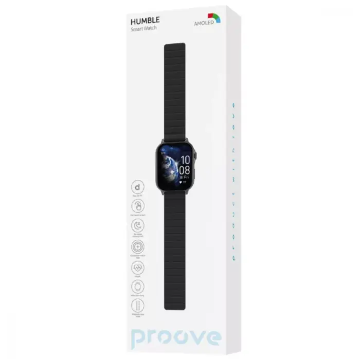 Смарт годинник Proove Humble — це стильне та функціональне рішення для сучасних користувачів, які шукають баланс між класичним дизайном та сучасними технологіями. Його стриманий чорний корпус ідеально пасує до будь-якого стилю, підходячи як для ділового образу, так і для повсякденного носіння.