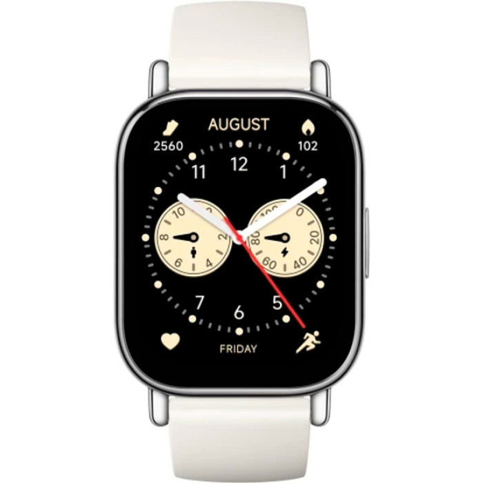 Форма корпусу продумана так, щоб годинник виглядав стильно як на чоловічому, так і на жіночому зап’ясті, а світло-золотий відтінок підкреслює сучасний і вишуканий стиль. Кнопки керування розташовані ергономічно, що дозволяє зручно користуватися годинником навіть у рукавицях або під час тренувань. Компактні розміри 48,2 × 39,3 × 10,6 мм та вага 29,2 г роблять гаджет практичним та непомітним, але водночас надають відчуття надійності.