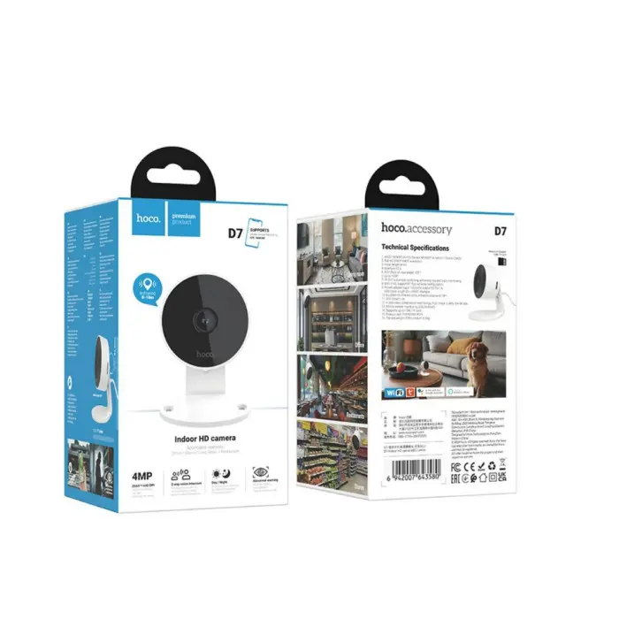 Смарт-камера Hoco D7 — современное устройство для видеонаблюдения в помещениях. Она сочетает высокое разрешение, удобное дистанционное управление и интеллектуальные функции, что делает её отличным выбором для дома, офиса или магазина.