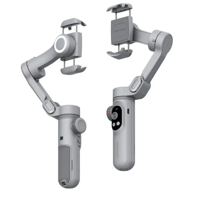 Триосьовий стабілізатор AOCHUAN Professional Gimbal Stabilizer for Smartphone SMART X Pro Grey має складну 3-осьову стабілізацію, яка відповідає за зменшення ударів, викликаних рухом руки під час запису. Пристрій у режимі реального часу реагує на кожен ваш рух і утримує телефон у тому самому положенні завдяки панорамному кутові 310°, кутові повороту 330°, кутові нахилу 345° та регульованому куту нахилу 76°.